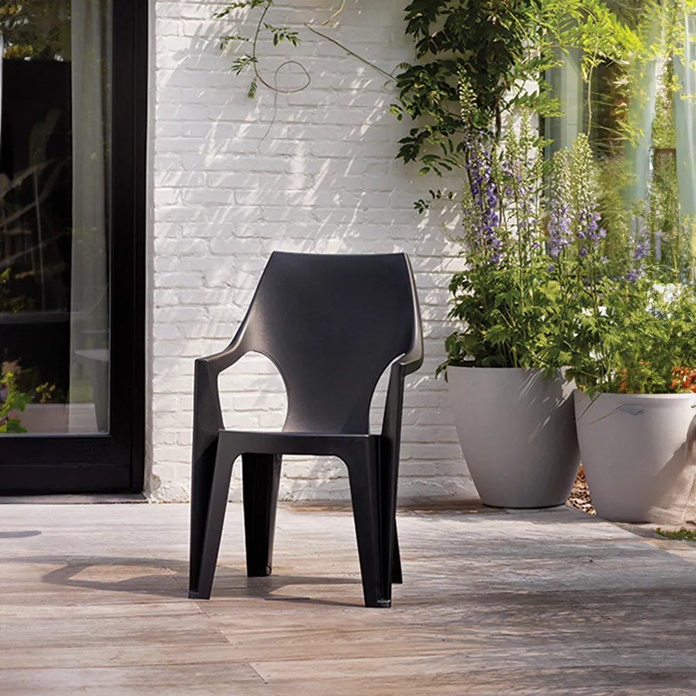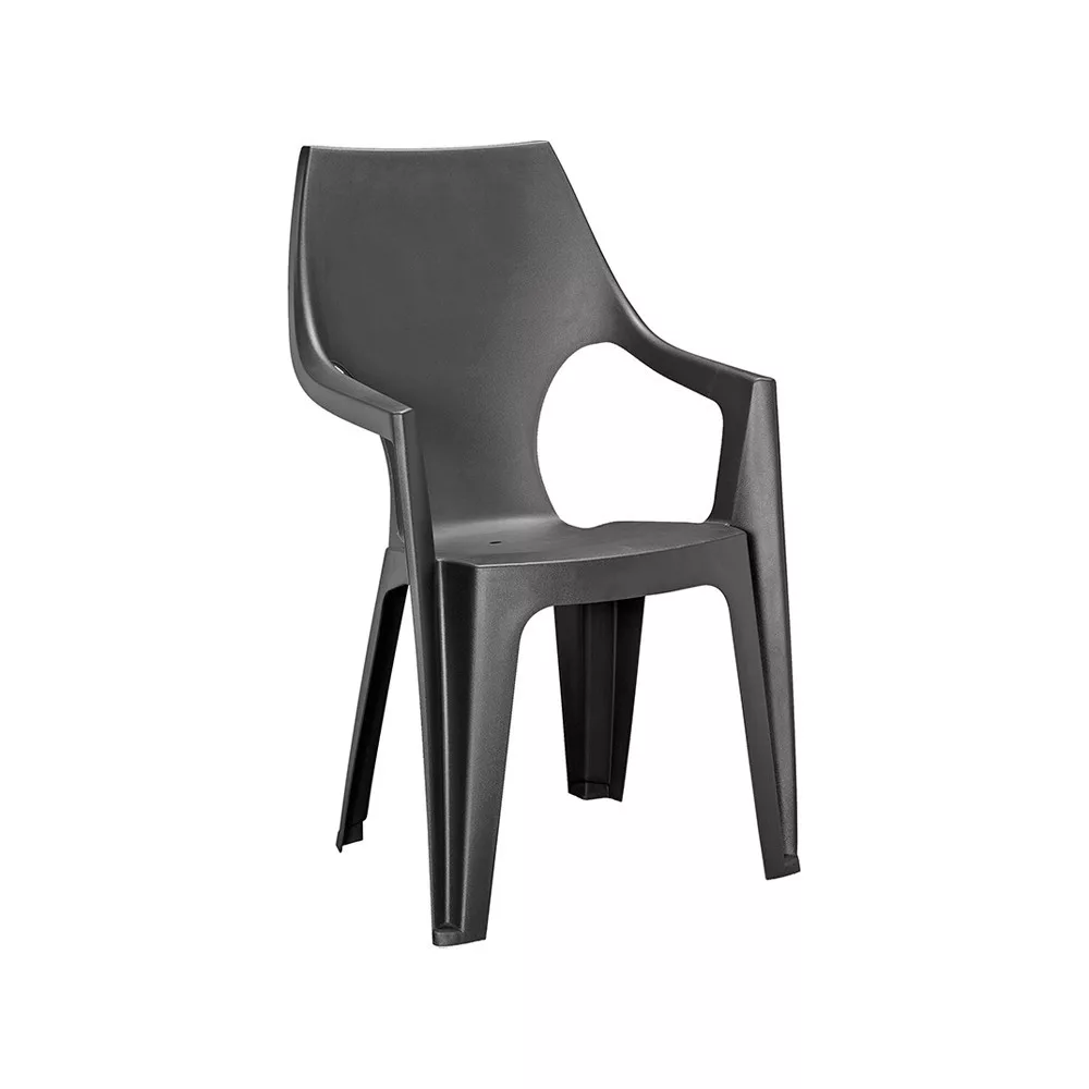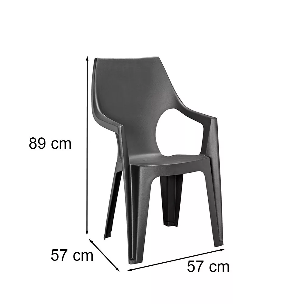 Visoka plastična vrtna stolica Dante dizajnirana je imajući na umu udobnost i moderan dizajn. Grafitna boja joj daje elegantan izgled, dok visoki, blago zaobljeni naslon i aerodinamični nasloni za ruke pružaju maksimalnu udobnost.