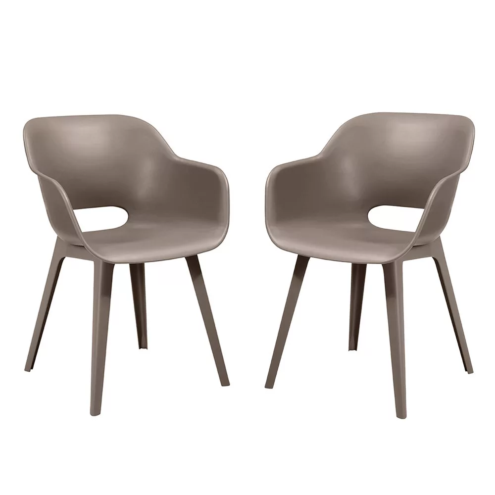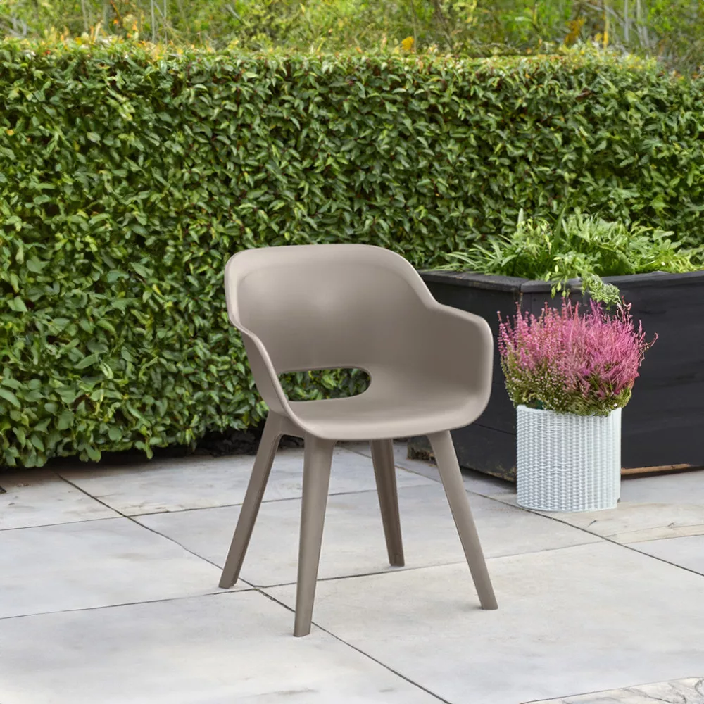 Vrtna stolica Akola Duo u cappuccino boji ima jedinstven oblik s zaobljenim naslonom i naslonima za ruke.