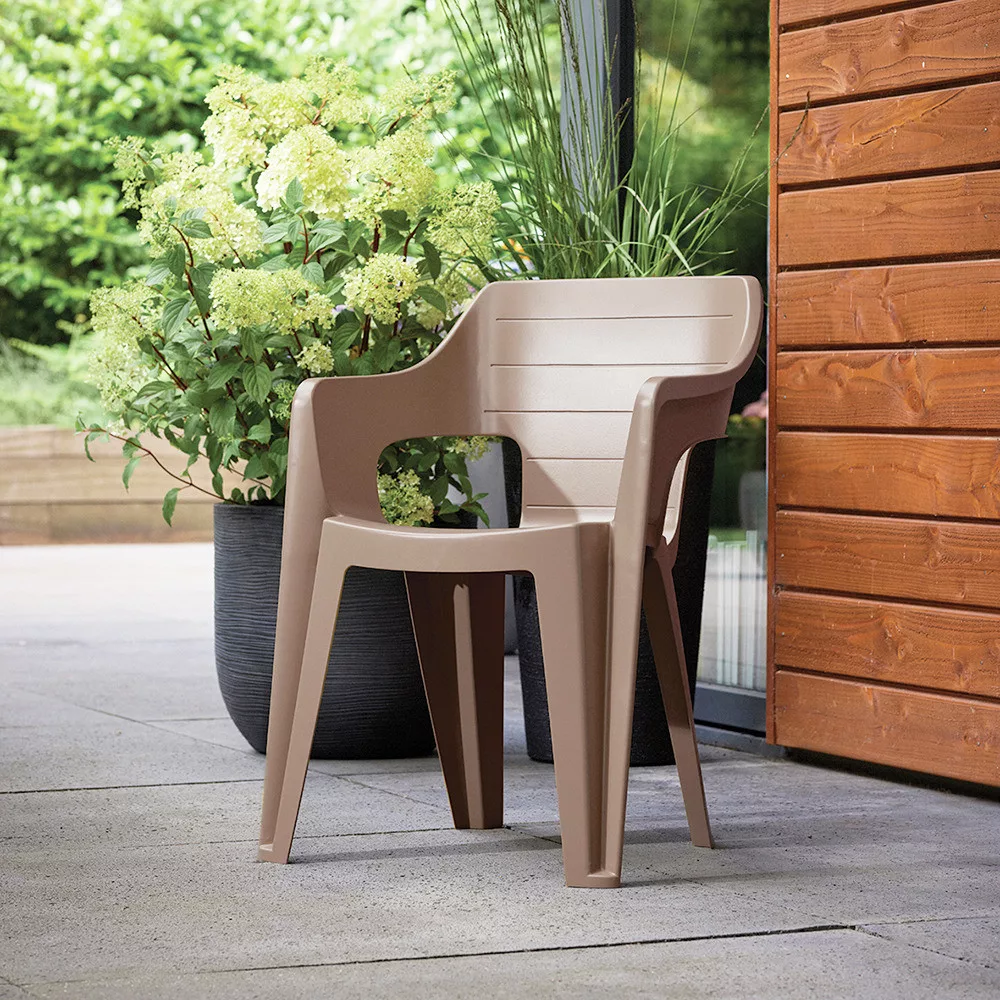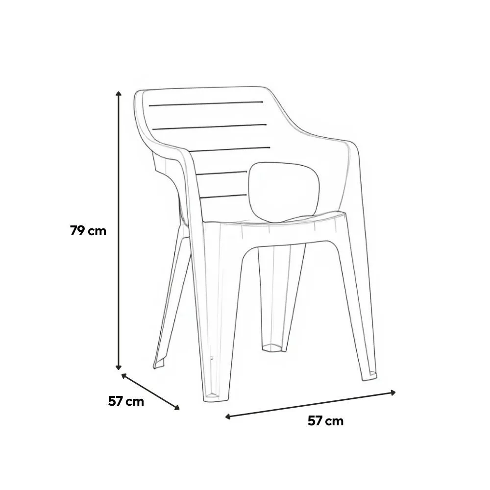 Čvrsti nasloni za ruke osiguravaju udobnije sjedenje, čak i tijekom duljeg korištenja. Stolica je idealan izbor za vrtni stol za objedovanje ili za druženja s obitelji i prijateljima.