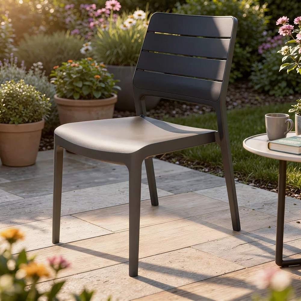 Svojom minimalističkom formom plastična vrtna stolica Porto pruža moderan i elegantan izgled. Njezin dizajn bez naslona za ruke rezultira kompaktnom veličinom, što je čini jednostavnom za postavljanje čak i u manjim prostorima.