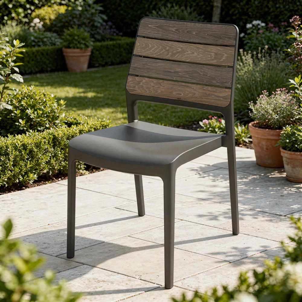 Zahvaljujući materijalu otpornom na UV-zračenje i vlagu, stolica dugo zadržava boju i izdržljivost, čak i na otvorenom.