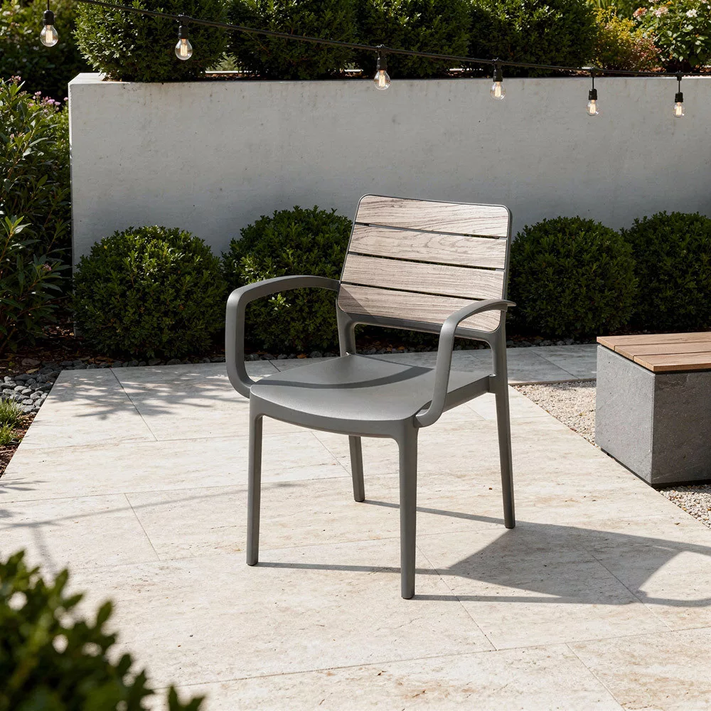 Vrtna stolica Porto s naslonima za ruke odlikuje se čistim dizajnom koji vanjskim prostorima daje moderan izgled. Nasloni za ruke pružaju udobnu potporu za svakodnevnu upotrebu.