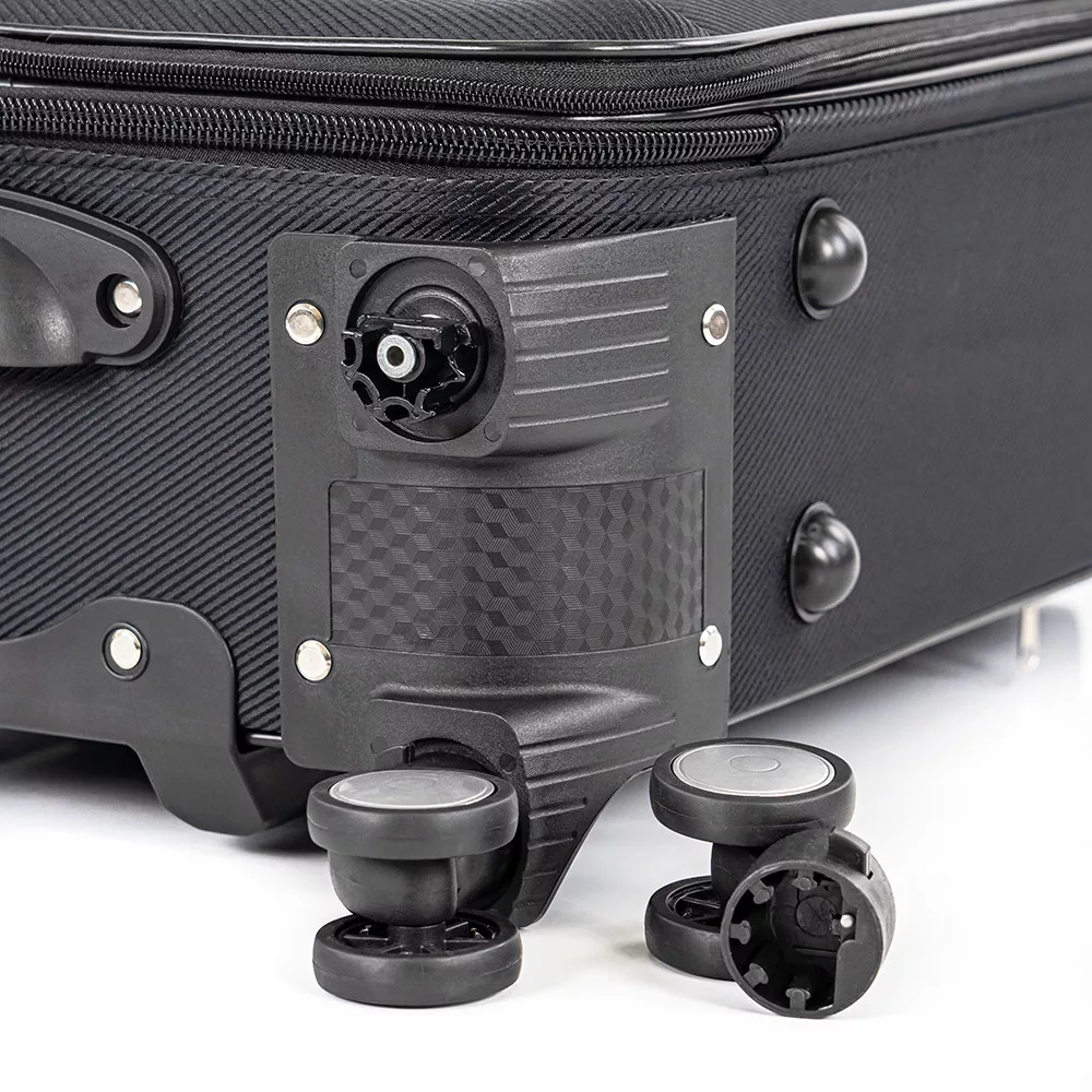 Četiri dvostruka kotačića osiguravaju tiho i glatko kretanje ubilo kojemsmjeru. Izvrsna upravljivost omogućuje vam udobno kretanje u uskim prostorima ili na prometnim zračnim lukama.