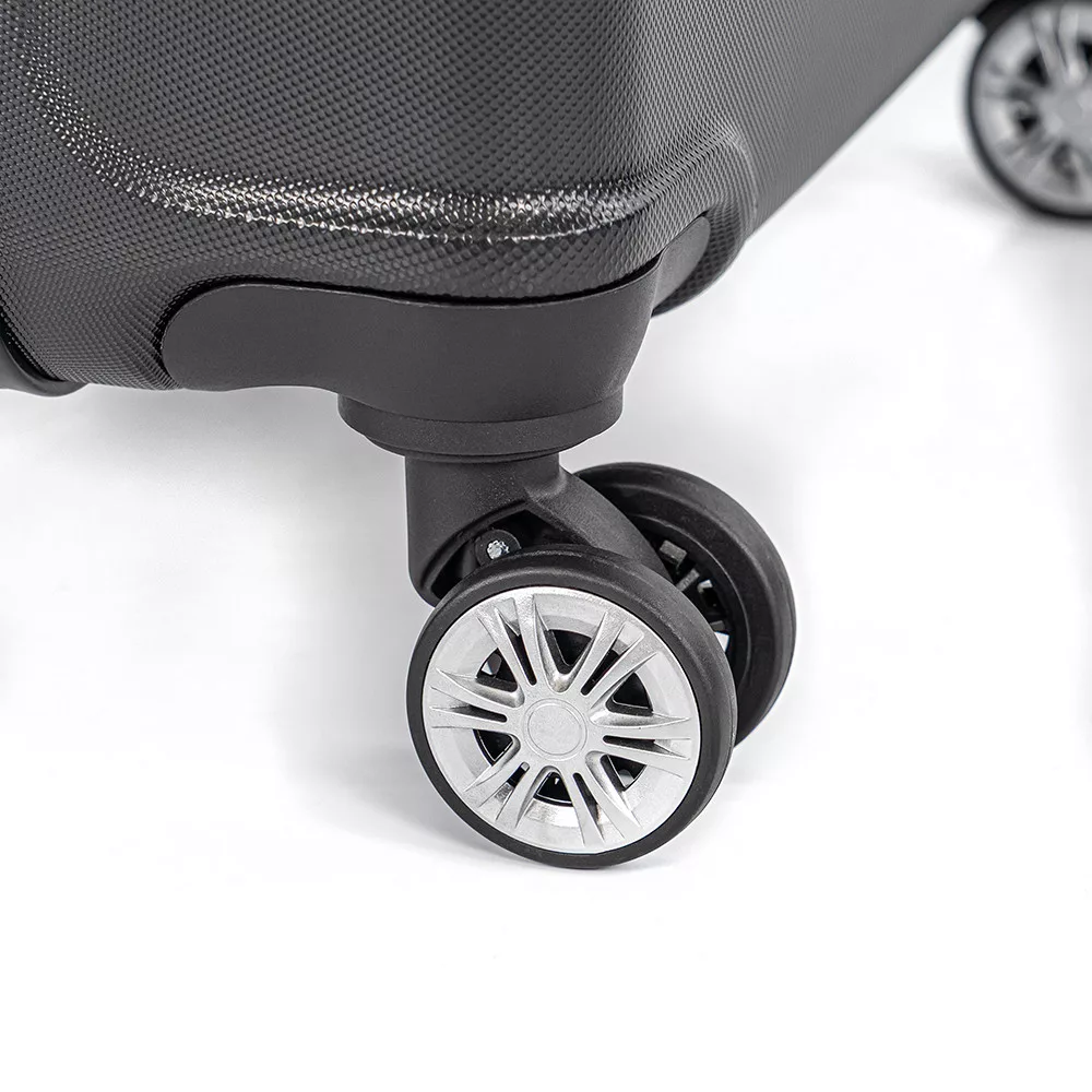 Četiri dvostruka kotačića osiguravaju tiho i glatko kretanje ubilo kojemsmjeru. Izvrsna upravljivost omogućuje vam udobno kretanje u skučenim prostorima ili na prometnim zračnim lukama.