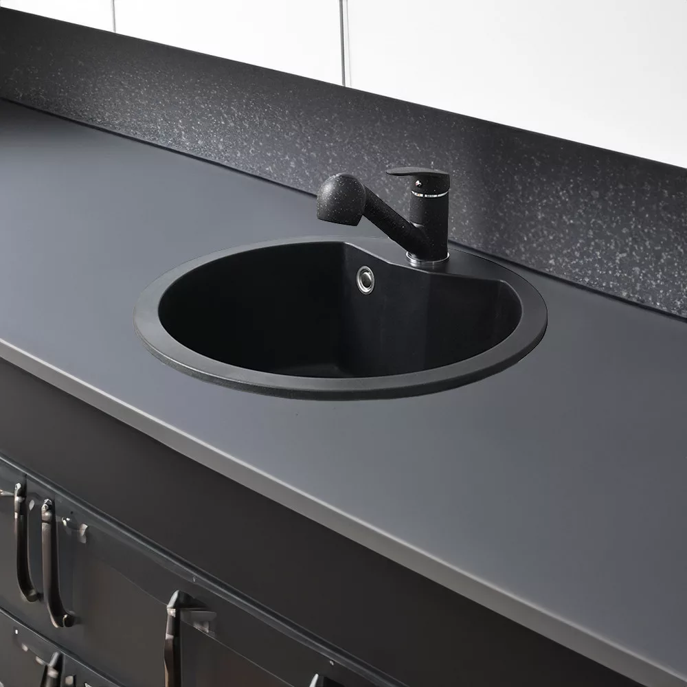 Odaberite okrugli crni granitni sudoper Dorin i stvorite jedinstveno elegantnu i učinkovitu kuhinju u kojoj se svakodnevni kuhinjski zadaci mogu obavljati s lakoćom!
