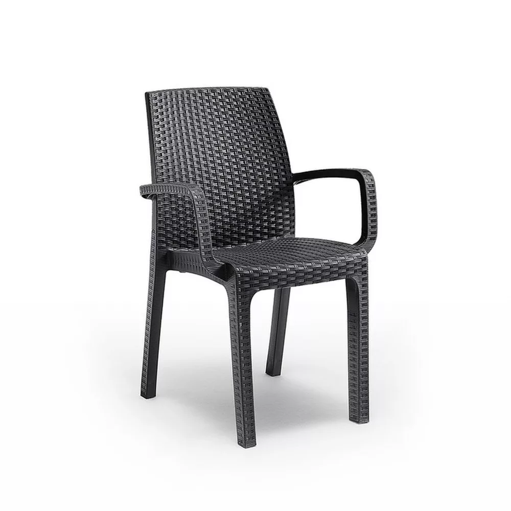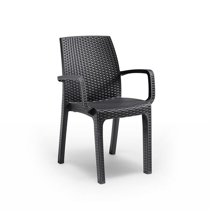 Stolica je izrađena od polipropilenskog plastika koji oponaša izgled prirodnog ratan. Prednost toga je što je namještaj lagan za pomicanje, elegantan, a opet izdržljiv i stabilan, pa ga možete sigurno koristiti. Većina plastike korištene u proizvodnji reciklirana je, što je čini održivijim izborom. Još jedna prednost namještaja od umjetnog ratan-a je ta što je vodootporan, otporan na ekstremne vremenske uvjete i UV zračenje te se lako čisti.