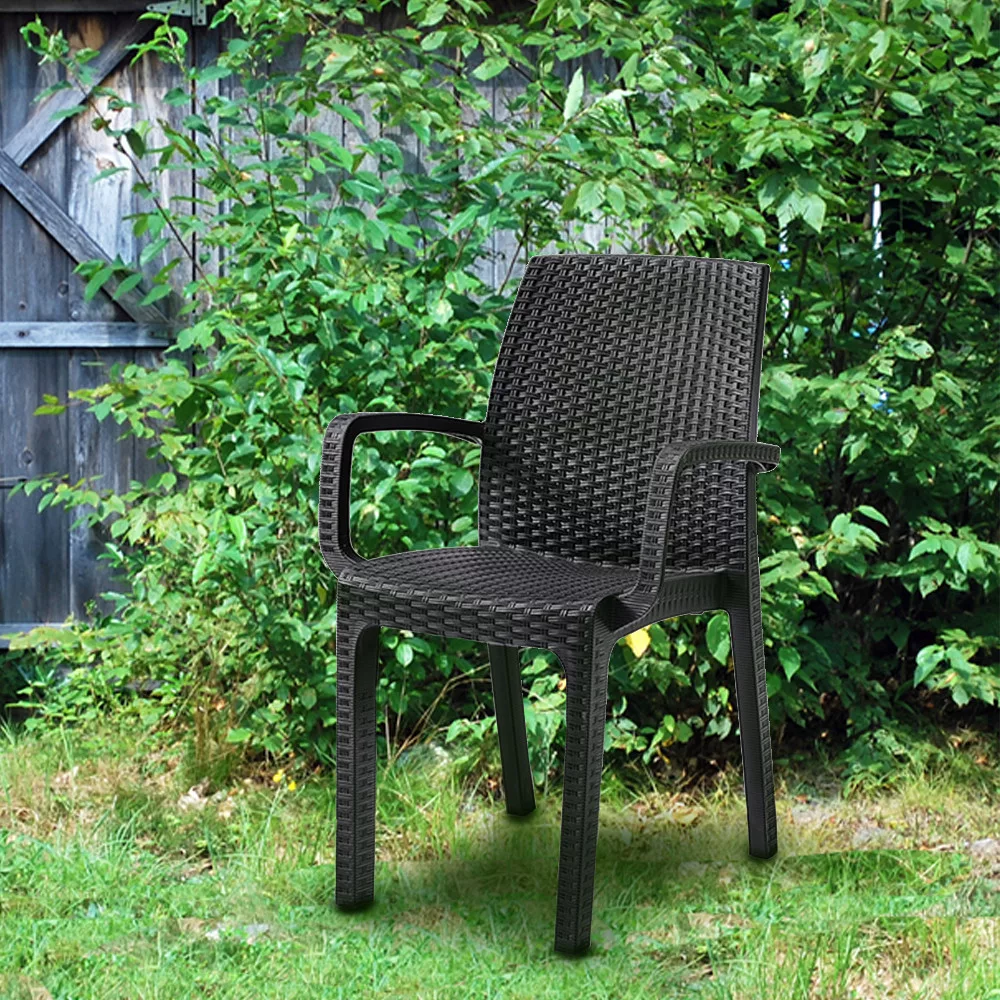 Ova siva vrtna stolica od sintetičkog ratana s naslonima za ruke idealna je za svakoga tko cijeni udobnost i kvalitetu, a traži elegantno i praktično rješenje za svoj dom ili poslovni prostor. Materijal od sintetičkog ratana čini stolicu izdržljivom, omogućujući joj da lako podnese vremenske uvjete, UV zračenje i vlagu koji tijekom godina mogu oštetiti vrtni namještaj.