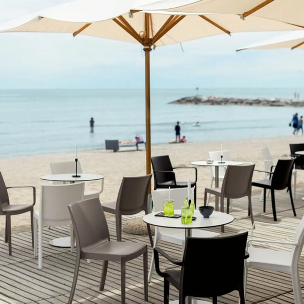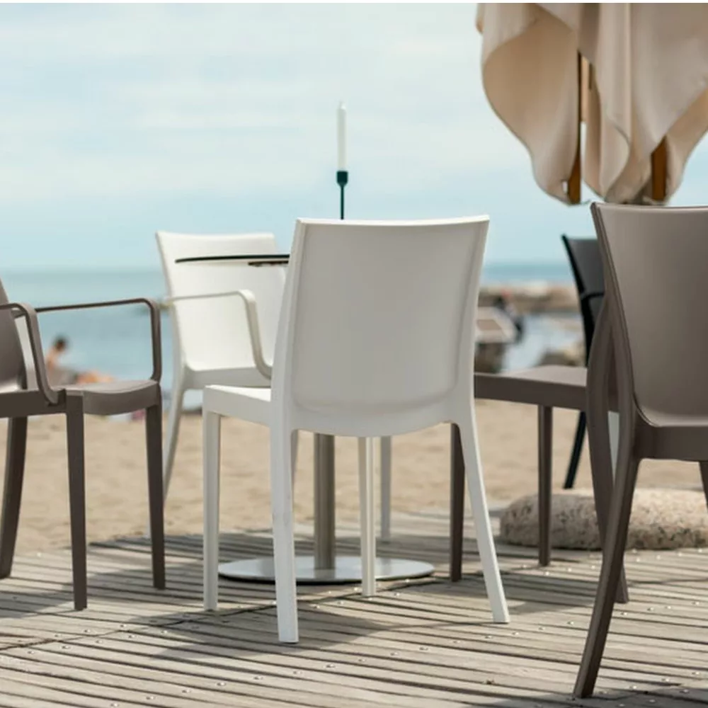 Stolica je izrađena od polipropilenskog plastika. Prednost toga je što je namještaj lagan za premještanje, elegantan, a opet izdržljiv i stabilan, pa ga možete sigurno koristiti. Većina plastike korištene u proizvodnji reciklirana je, što je čini održivijim izborom. Još jedna prednost plastičnog namještaja je to što je vodootporan, otporan na ekstremne vremenske uvjete i UV zračenje te se lako čisti.