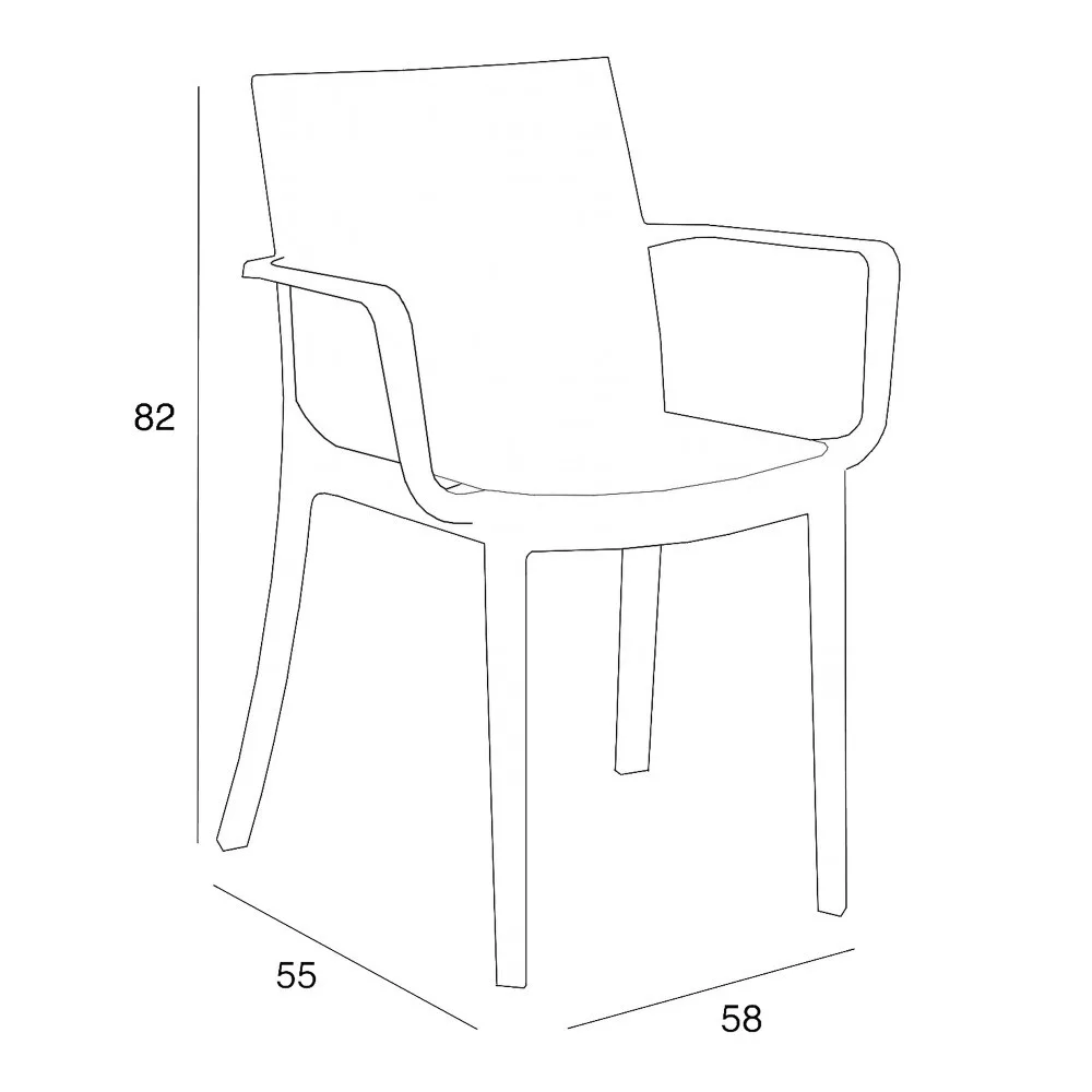 Dimenzija 55 x 58 x 82 cm, ova stolica izgleda savršeno u svakom okruženju. Zahvaljujući obliku, stane na manji balkon ili terasu uz odgovarajući stol. Dizajn stolice ne samo da je čini elegantnom, već i udobnijom za sjedenje.