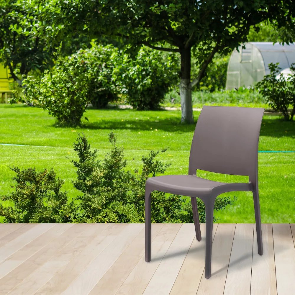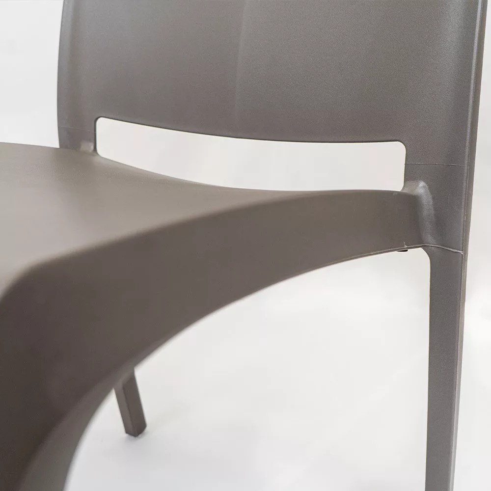 Stolica je izrađena od polipropilena. Prednost toga je što je namještaj lagan za premještanje, elegantan, a opet izdržljiv i stabilan, pa ga možete sigurno koristiti. Većina plastike korištene u proizvodnji reciklirana je, što je čini održivijim izborom. Još jedna prednost plastičnog namještaja je to što je vodootporan, otporan na ekstremne vremenske uvjete i UV zračenje te se lako čisti.