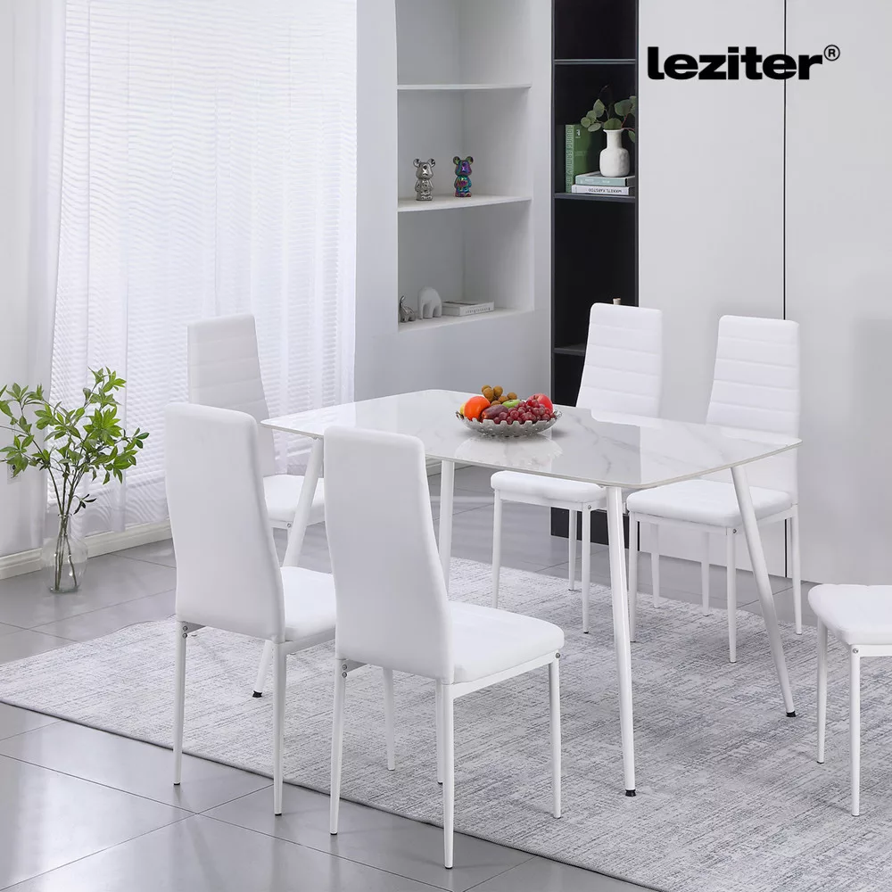 Zahvaljujući svojoj veličini od 140x80 cm, blagovaonski stol Leziter Bora nudi udoban prostor za obiteljske večere i druženja s prijateljima. Snažne metalne noge u bijeloj boji osiguravaju stabilnost i izdržljivost — nema više klimavih stolova koji će vas stalno živcirati. Čvrsta konstrukcija stola omogućuje vam da ga s povjerenjem koristite u svakodnevnom životu i za posebne prigode.