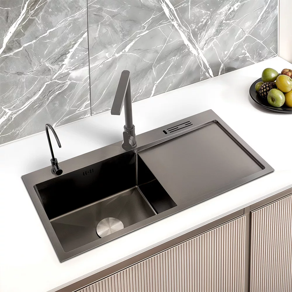 Crno-bronzana površina ne samo da mu daje jedinstven izgled, već je zahvaljujući nano tehnologiji otporna i na masnoću, kamenc i otiske prstiju. Otporna na ogrebotine, polirana površina osigurava da će vaš sudoper godinama zaredom i dalje sjati kao nov.