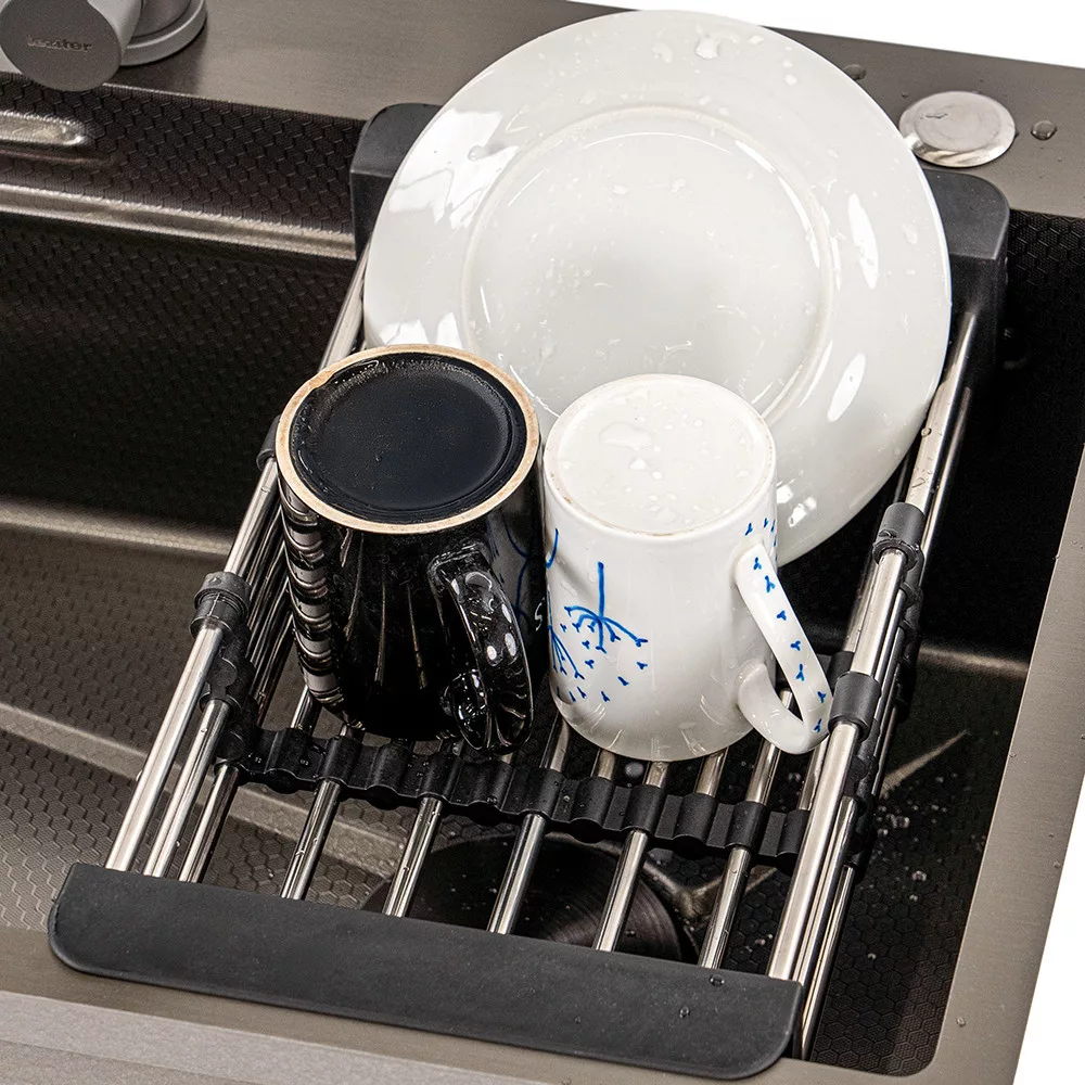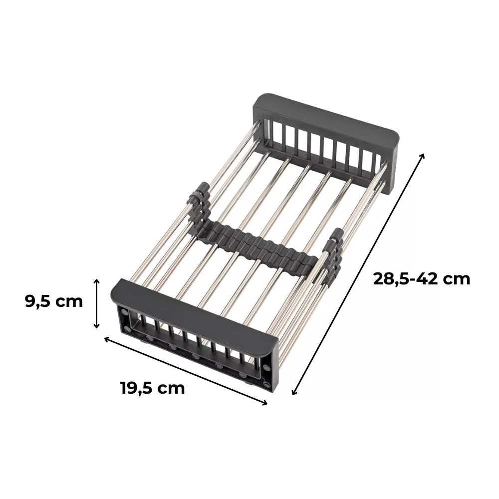 Ova teleskopska košara nije samo jednostavan dodatak: ona je pravi svestrani pomagač! Bilo da perete svježe povrće, sušite posuđe ili optimizirate prostor na radnoj ploči, savršena je za svaku situaciju. Njezina kompaktna veličina omogućuje vam da je lako spremite u ormarić ili na radnu plohu nakon pranja posuđa.