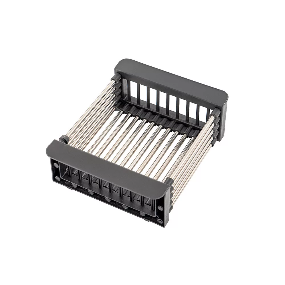 Svagdašnji izazovi u kuhinji: nema dovoljno prostora za sušenje posuđa, pranje povrća i voća je nezgrapno, a radna ploča postaje neuredna. Stalno pospremanje i traženje prostora može biti frustrirajuće, osobito u manjoj kuhinji. Teleskopski košar izrađen je od nehrđajućeg čelika i izdržljivog ABS materijala otpornog na koroziju, stoga će vam dugo služiti u kuhinji. Zahvaljujući prilagodljivom dizajnu, pristaje gotovo svakoj veličini sudopera (290–475 cm), uključujućinehrđajuće čelične sudopere Leziter. Idealan je za sušenje posuđa, pranje voća i povrća, a može se koristiti i kao cjedilo. Protuklizne podloge osiguravaju stabilnost, dok se njegova elegantna crna boja uklapa u svaku kuhinju.