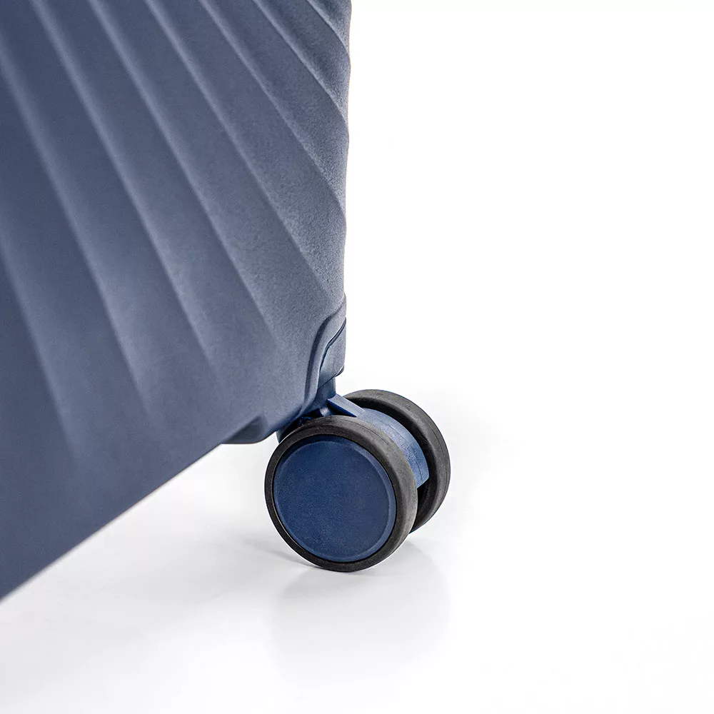 Četiri dvostruka gumena kotačića osiguravaju tiho i glatko kretanje u bilo kojem smjeru. Izvrsna upravljivost omogućuje vam udobno kretanje u uskim prostorima ili krcetim zračnim lukama, čime vam putovanje postaje lakše.