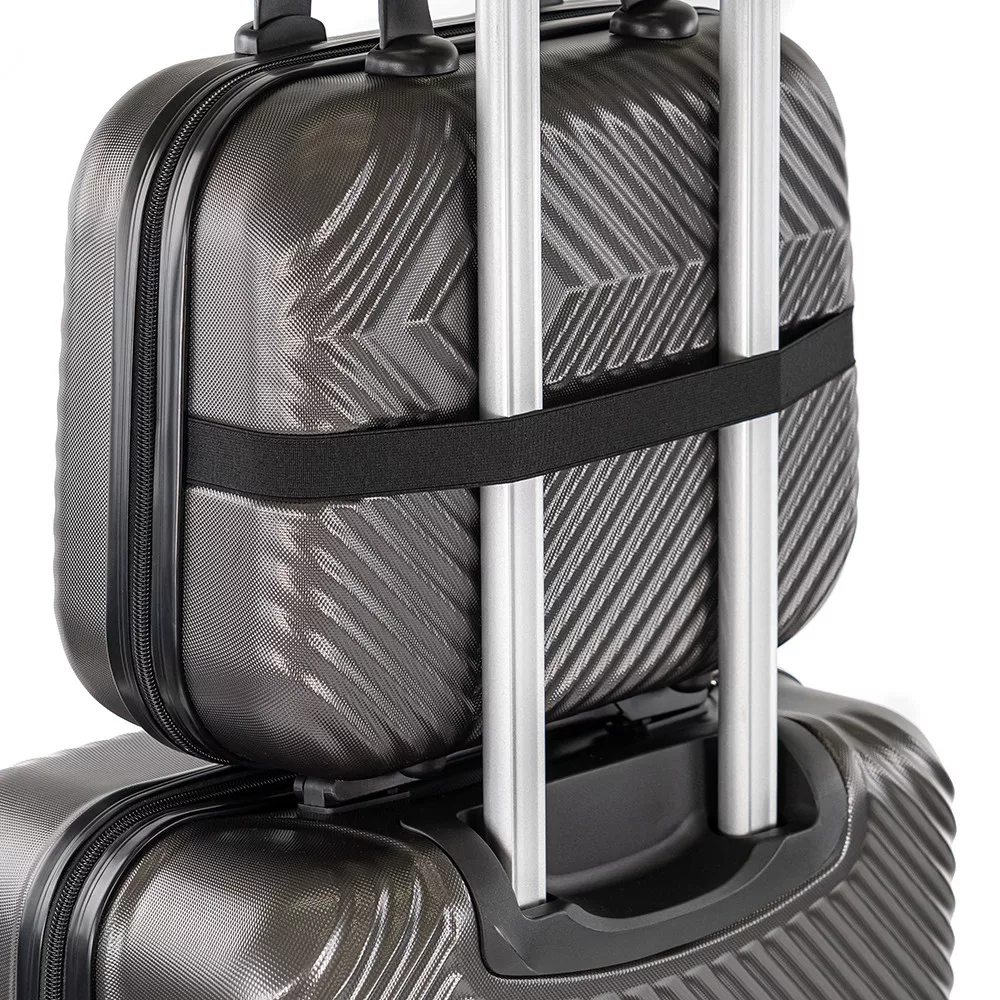 - Priključivanje: Ručna prtljaga i torba za toaletne potrepštine mogu se pričvrstiti na vučnu ručku kabinske prtljage trakom na stražnjoj strani