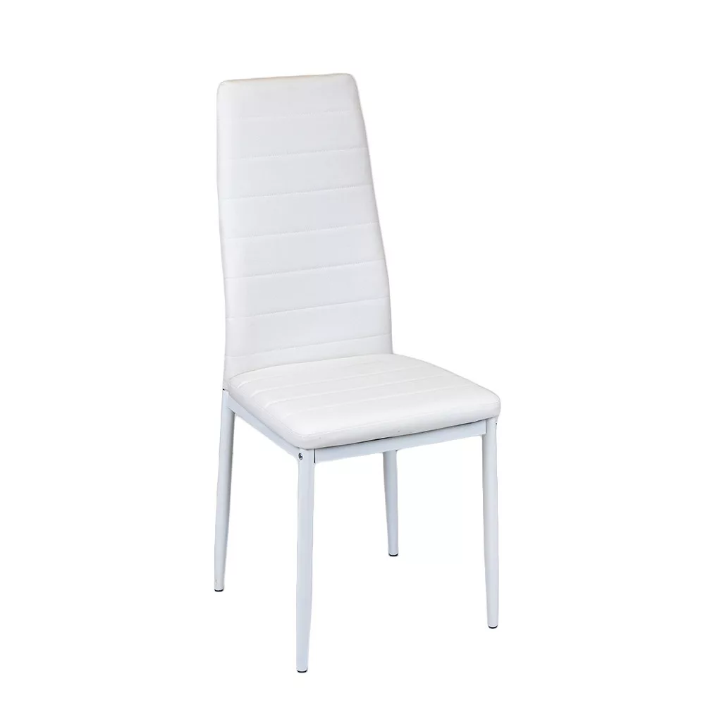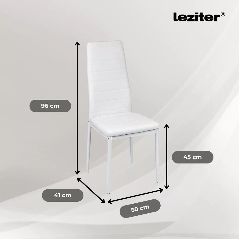 Stolice za blagovaonicu Tino NOVA koje dolaze u setudolazeumodernojbijeloj boji, stoga se savršeno uklapaju s pločom stola svijetle boje, stvarajući upečatljiv kontrast u blagovaonici.Sjedalo presvučeno tekstilnom kožomnije samoestetsko, već i praktično – lako se čisti i otporno je na svakodnevno habanje.