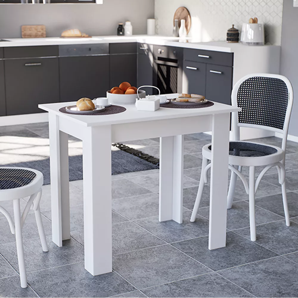 Blagovaonski stol York izrađen je od visokokvalitetne iverice, što jamči izdržljivost i dug vijek trajanja. Bijela iverica je bezvremenska i otporna na svakodnevnu upotrebu, tako da možete dugo uživati u ljepoti i funkcionalnosti stola.