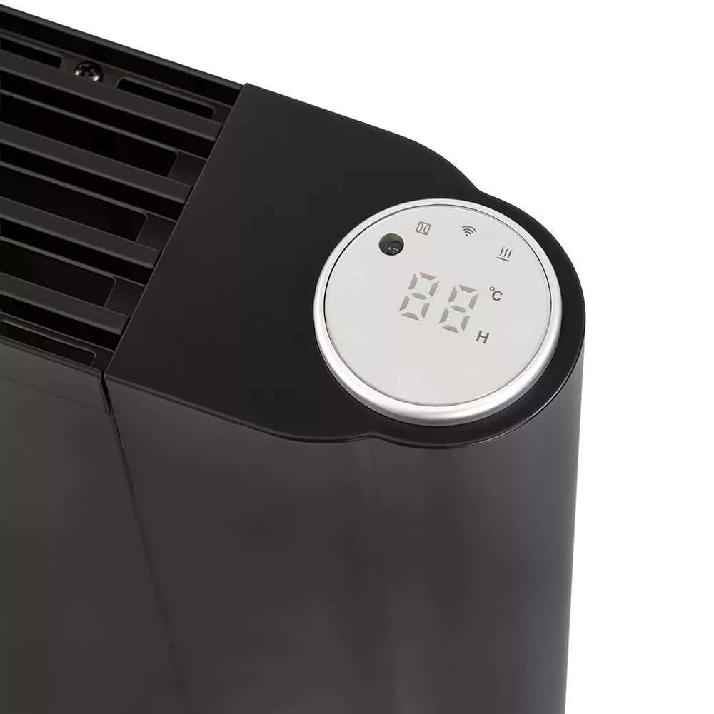 Zaštita od pregrijavanja jamči pouzdan rad, a zaštita IP24 omogućuje korištenje uređaja čak i u kupaonicama. Krugasti digitalni upravljački panel uvučen u gornji dio osigurava jednostavno i jasno rukovanje: zaslon prikazuje postavljenu temperaturu, dok kružne ikone označavaju status funkcija.