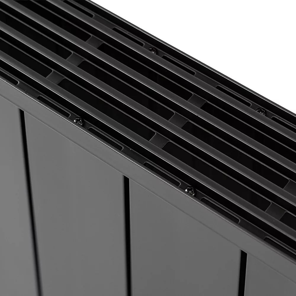 Poklopac radijatora izrađen je od aluminija, koji je izdržljiv, ne hrđa i izvrstan je provodnik topline. Vertikalni rebraasti uzorak vizualno izdužuje površinu, dok se nenametljiva crna boja savršeno uklapa u gotovo svaki stil uređenja interijera, od modernog minimalizma do klasičnih interijera.