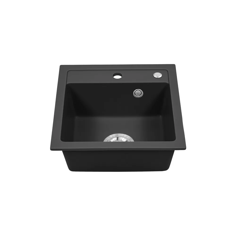 Kvadratni crni granitni sudoper Nia zadovoljava i estetske i funkcionalne zahtjeve. Njegova ugradnja na razinu ploče daje vašoj kuhinji moderan izgled, dok njegove kompaktne dimenzije i materijali vrhunske kvalitete osiguravaju dug vijek trajanja.