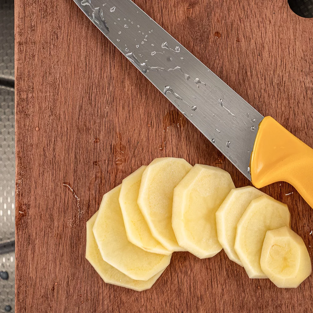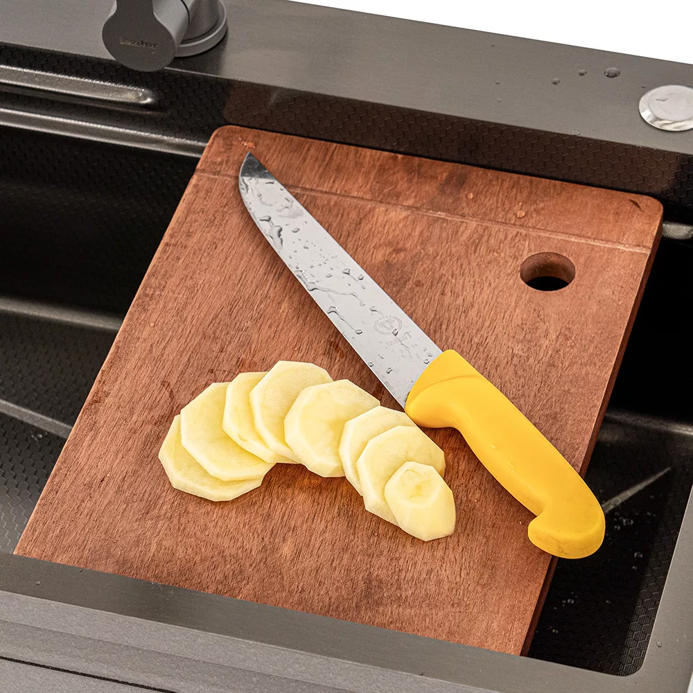 Na kuhinjskom radnom stolu uvijek je ograničen prostor, osobito u manjim kuhinjama. Svaki centimetar je važan tijekom pripreme, ali zbog skučenih uvjeta teško je održavati red i raditi učinkovito. Osim toga, tradicionalne daske za rezanje ne uklapaju se u kuhinjski tijek rada, pa čišćenje oduzima više vremena. Drvena daska za rezanje Catania, dizajnirana za sudoper, rješava taj problem. Može se postaviti izravno na sudoper, tako da ne zauzima dodatni prostor na radnoj ploči. Idealna je za sve pripreme u kuhinji, bilo za rezanje ili posluživanje. Njezin neklizajući dizajn osigurava sigurno i stabilno korištenje, dok je izdržljivo drvo ne samo elegantno, već i dugoročno pouzdano.