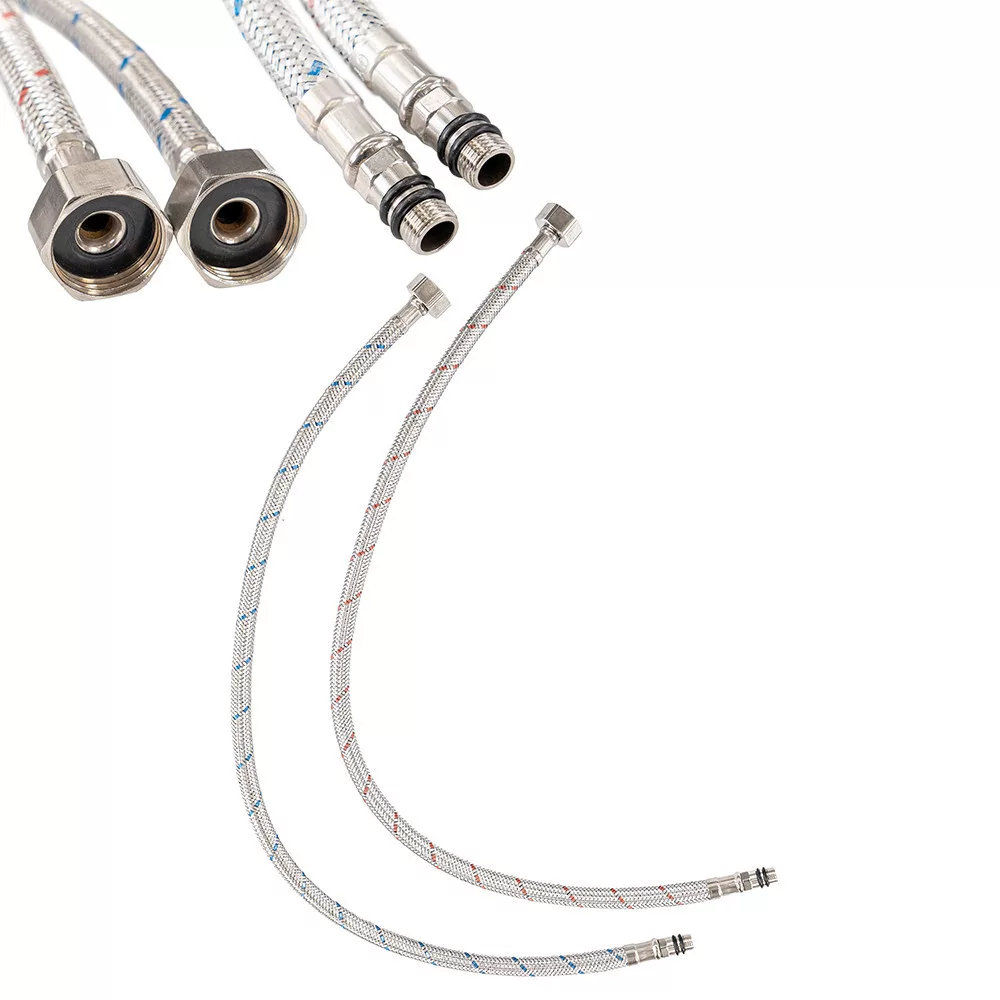 Cijevi za toplu i hladnu vodu su visokokvalitetne, fleksibilne cijevi obložene nehrđajućim čelikom koje jamče dugotrajnu i bezbrižnu upotrebu. Zahvaljujući spoju koji ne propušta vodu, više nema mrljastih radnih ploča, oštećenja od vode ili neugodnih iznenađenja.