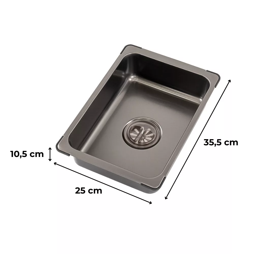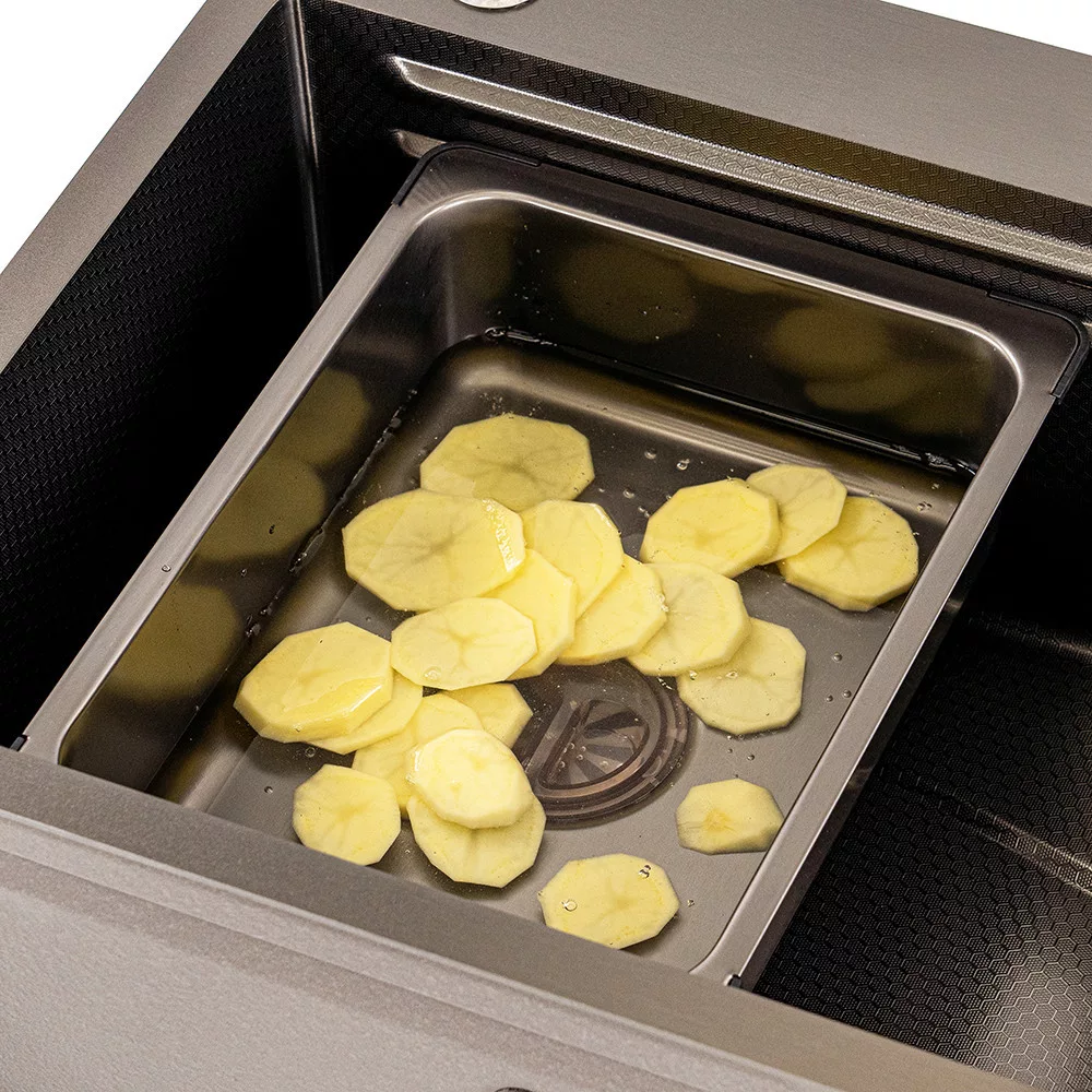 Zahvaljujući precizno dizajniranoj veličini, ova unutarnja košarica savršeno pristaje u sudopere Catania i Rose. Ne klizi ni ne pomiče se, već ostaje stabilna na mjestu kako bi učinkovito filtrirala ostatke hrane.