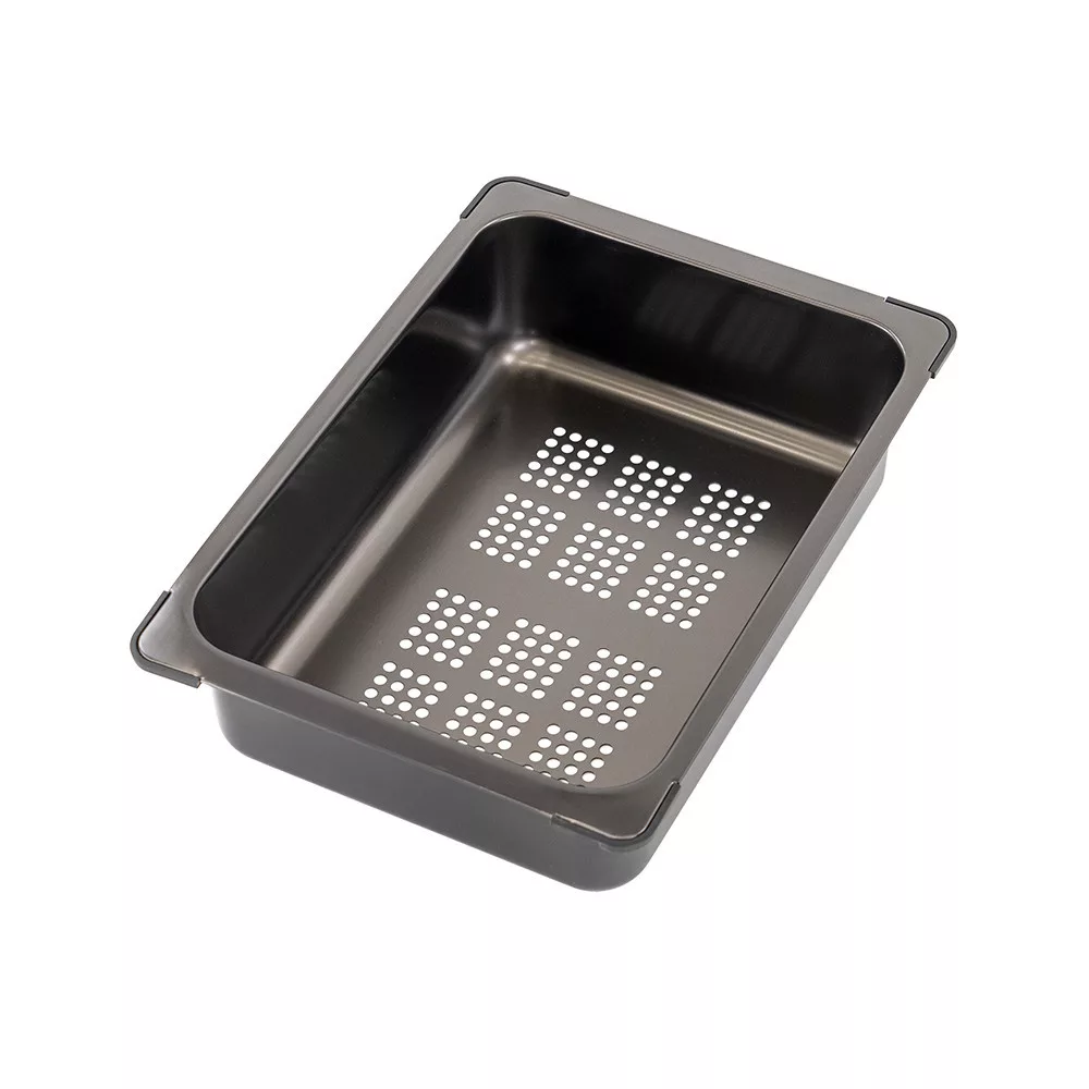 Ova košarica za kapanje od nehrđajućeg čelika na kopču pomaže održati vašu kuhinju urednom i čistom. Perforirano dno osigurava brzo sušenje, pa se posuđe suši u tren oka i ne ostavlja mrlje od vode na radnoj ploči.