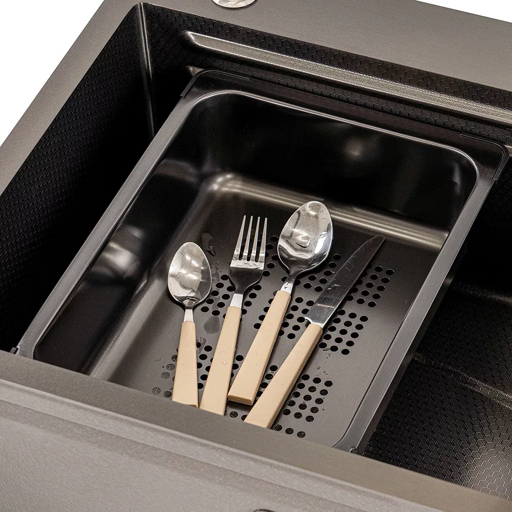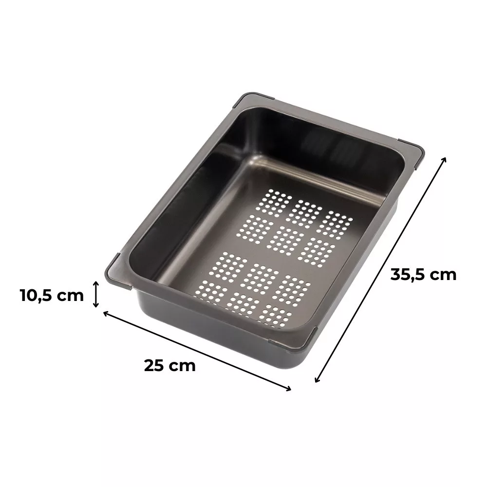 Košara za ocjeđivanje idealna je za sušenje posuđa, čaša i pribora za jelo, dok voda teče ravno u sudoper.