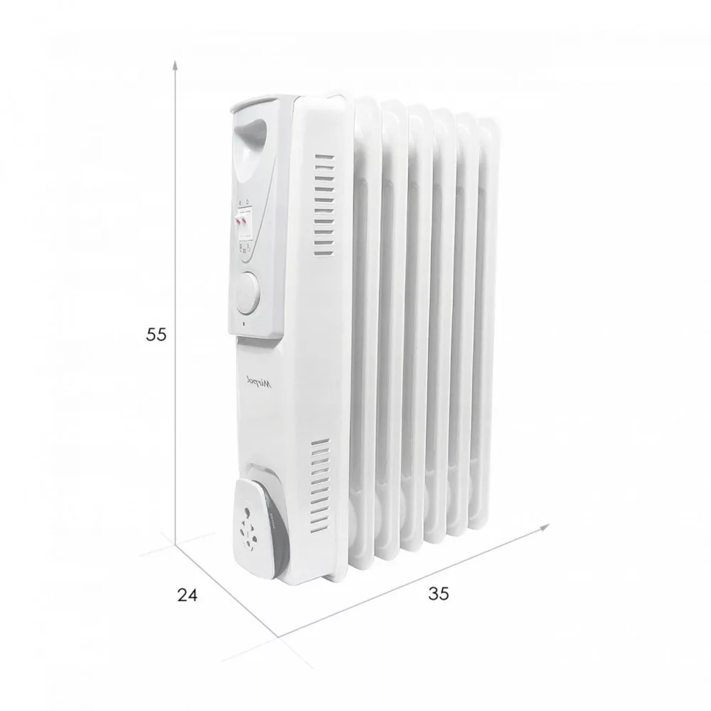 Električni radijator za kupaonicu s 7 rebra takođerima držač kabela kako ne bi ometao pri korištenju. Može se čak i montirati na zid.