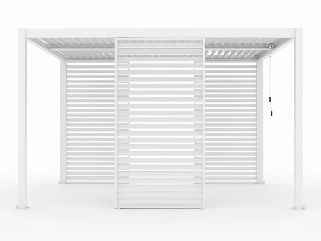 Zahvaljujući pokretnom bočnom zidu pergole, cijela se struktura može optimalno prilagoditi potrebama korisnika. Podešavanje vam omogućuje prilagodbu sjenčanja prostora za opuštanje prema vašim potrebama.Bočni zidovi nude širok raspon mogućnosti rasporeda i čine pergolu još funkcionalnijim rješenjem za krov i opuštanje u vrtu i na terasi.