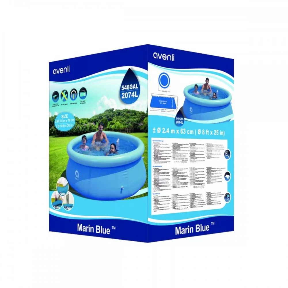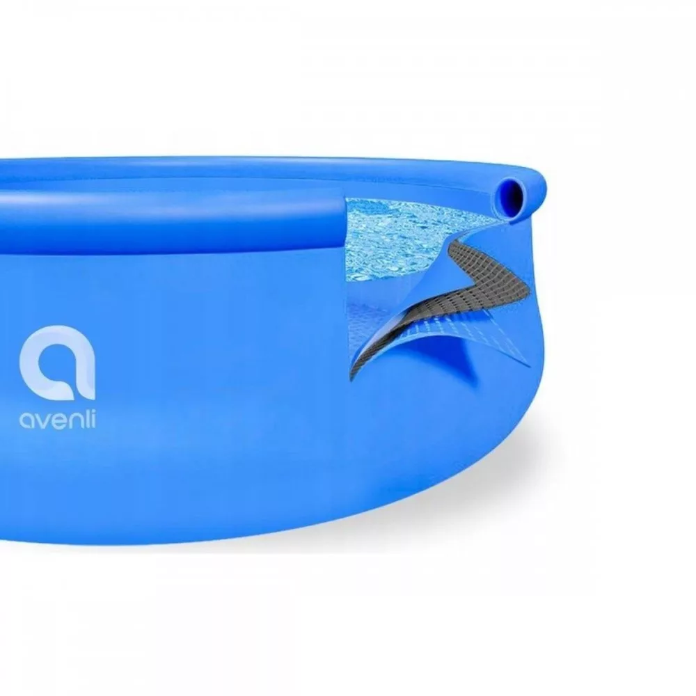Fantastično rješenje za vruće dane. Ovaj bazen je idealan za vrtove gdje možete provoditi vrijeme s prijateljima ili obitelji, izbjegavajući pritom žarko sunce. Ovaj bazen izrađen je od iznimno izdržljivih materijala, otpornih na sunčevu svjetlost i kemikalije, a zahvaljujući trima slojevima materijala, također je otporan. Postavljanje bazena traje samo nekoliko minuta i ne zahtijeva nikakve posebne alate, tako da nećete dugo čekati da uživate u vodi! Bazen treba postaviti na tlo te paziti na sve neravnine, izbočene korijenje i ostatke koji bi mogli oštetiti dno bazena i probušiti ga. Osim toga, ne postavljajte bazen na neravnu površinu kako biste izbjegli nezgode. Ovaj set preporučuje se za djecu stariju od 6 godina.